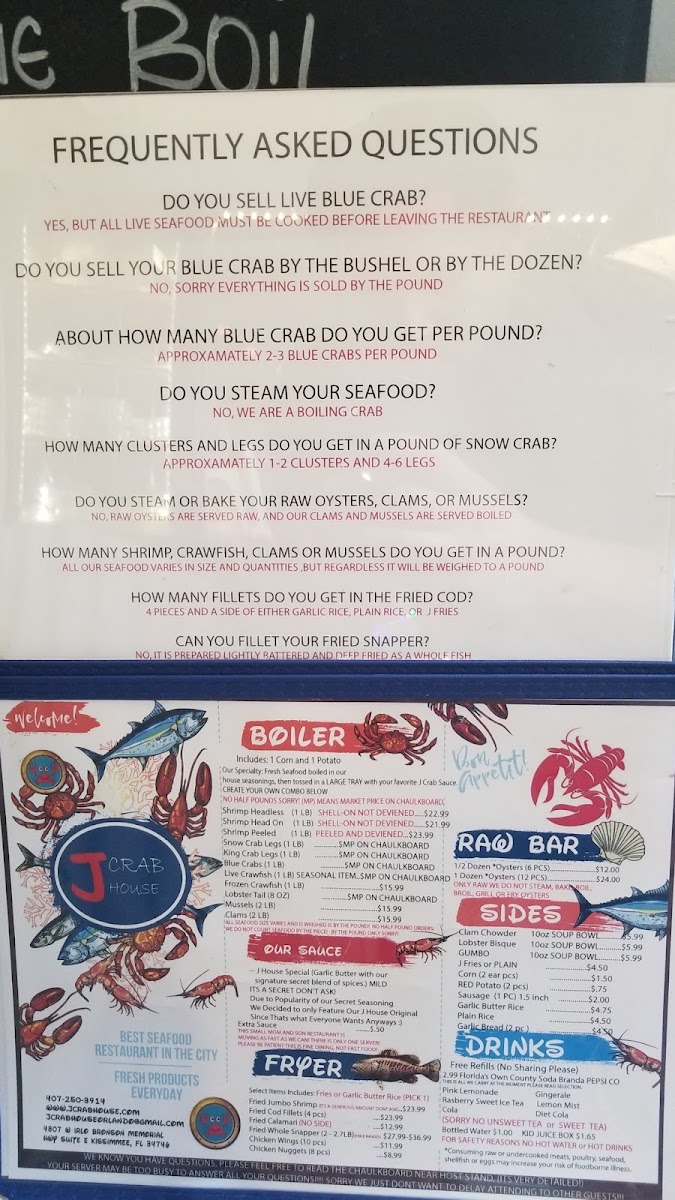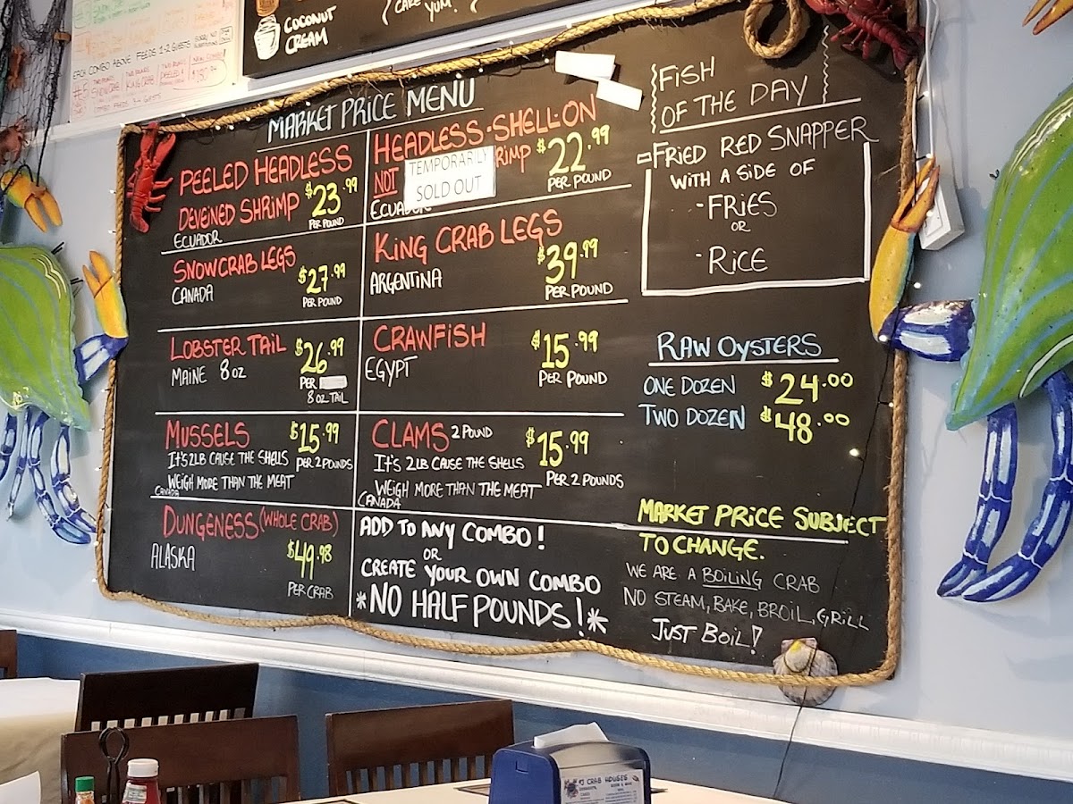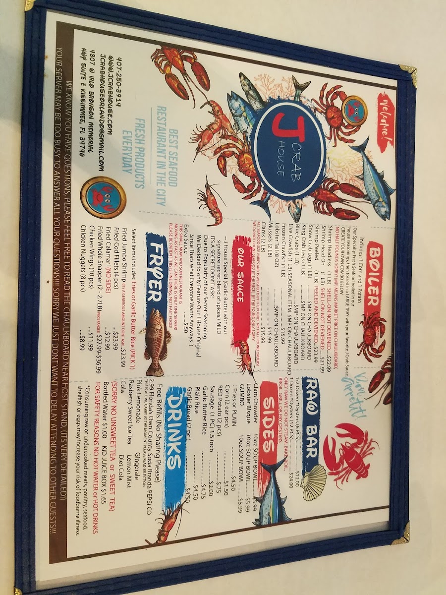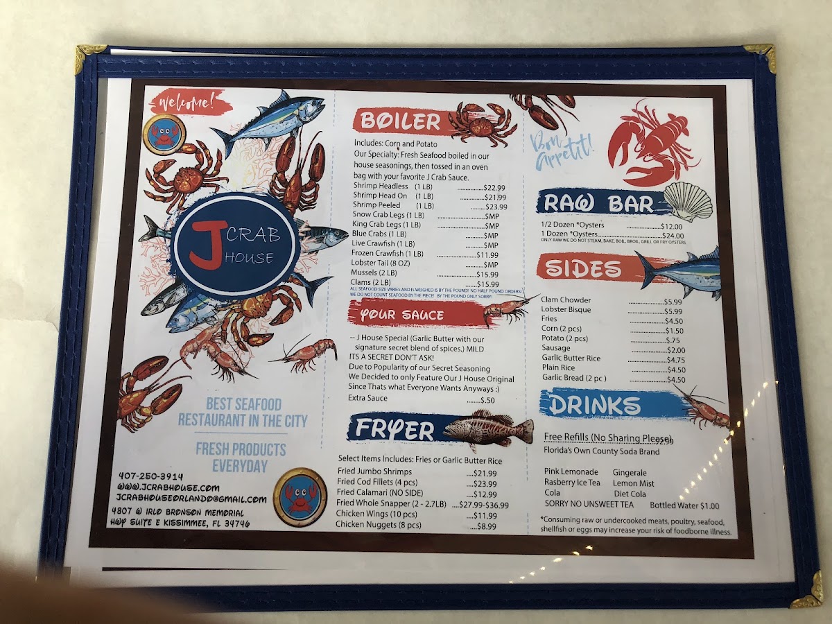 J Crab House offers a diverse and flavorful menu with a variety of combo meals, fried dishes, starters, and unique Filipino options. The J Crab Combo's are designed to satisfy different group sizes, with options like Combo #1 and Combo #2, each feeding 1-2 people, and the popular Combo #5, which serves 3-4 people. For those who prefer fried food, choices such as Fried Jumbo Shrimp, Fried Fish of the Day, and Fried Whole Snapper are available, along with Fried Calamari and Fried Shrimp starters. The restaurant also features a "Create Your Own Combo" section, where customers can choose from a variety of fresh seafood, including 1 LB Peeled Shrimp, 1 LB Snow Crab, and 1 LB King Crab. Sides like J Fries, Corn, and Sausage complement the meal, and beverages range from sodas like Sprite and Pepsi to a selection of beers such as Corona and Heineken. The wine menu offers options like Merlot and Pinot Grigio. For dessert, customers can indulge in Caramel Cheesecake or Coconut Cream Cake. Additionally, J Crab House offers Filipino-inspired dishes such as Adobo with Rice and Lechon, giving guests a taste of traditional flavors. The extensive menu ensures that there's something for everyone, making it a popular destination for seafood and Filipino cuisine lovers alike.